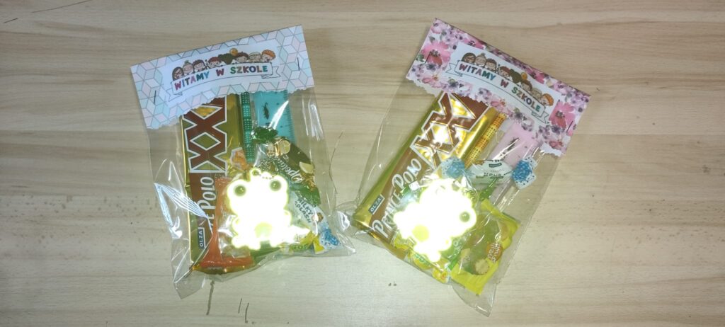 Na uroczystości nie mogło zabraknąć również klasy drugiej, która przygotowała dla swoich młodszych kolegów i koleżanek miłą niespodziankę. Drugoklasiści wręczyli pierwszakom słodkie upominki oraz specjalne breloki odblaskowe. Te breloki można łatwo przyczepić do plecaków, dzięki czemu uczniowie będą lepiej widoczni i bezpieczni po zmroku!