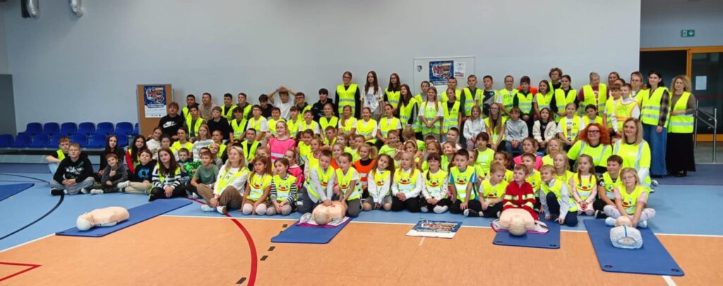 Zanim rozpoczęło się właściwe bicie rekordu, odbyły się zajęcia profilaktyczne, podczas których uczniowie dowiedzieli się, jak ważne jest udzielanie pierwszej pomocy w sytuacjach zagrożenia życia.