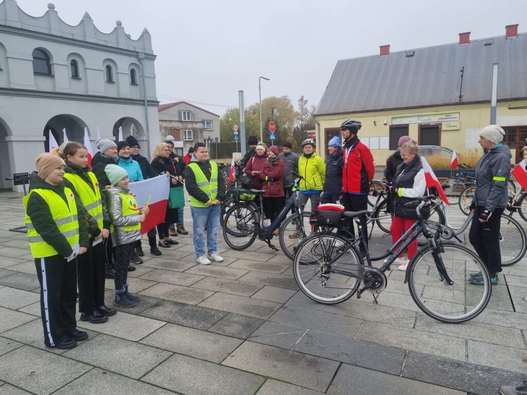 -> I Rajd Niepodległości w Gminie Przystajń: Tuż przed startem rajdu rowerowego, na zbiórce, rozdawali odblaski wszystkim uczestnikom, dbając o ich widoczność na drodze.