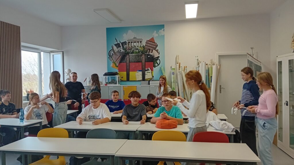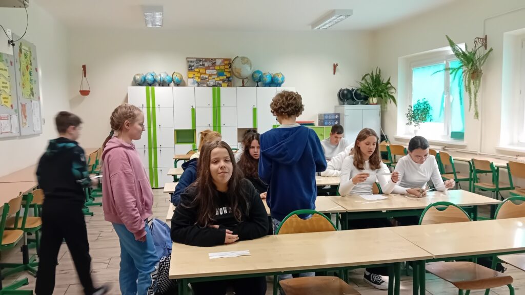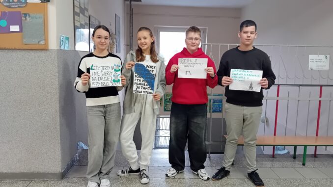 Co roku w drugą niedzielę listopada obchodzony jest w Polsce Dzień Łamańców Językowych. „Łamańcami” nazywamy trudne do wymówienia wyrazy oraz zdania, które podkreślają wyjątkowość naszego ojczystego języka. Uczniowie klasy VII w ramach zajęć rozwijających z języka polskiego przygotowali plakaty z wybranymi zdaniami „łamiącymi język”, a piątoklasiści rozdawali dziś uczniom karteczki z wymyślonymi przez siebie łamańcami i sprawdzali umiejętności artykulacyjne koleżanek i kolegów.