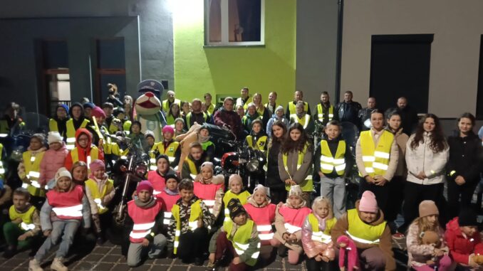 Wieczór uświetniła obecność wyjątkowych gości! Odwiedził nas Klub Motocyklowy SKL Dragon, który aktywnie i z wielkim zaangażowaniem wspiera naszą akcję „Odblaskowa Szkoła”. Motocykliści, dbając o bezpieczeństwo najmłodszych, przygotowali fantastyczną niespodziankę – rozdali dzieciom odblaski, przypominając o konieczności bycia widocznym po zmroku. A miłą i uśmiechniętą niespodzianką było również pojawienie się Sznupka, naszej ulubionej maskotki policyjnej!