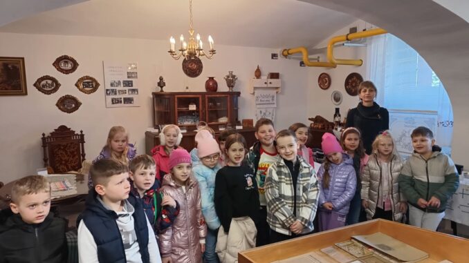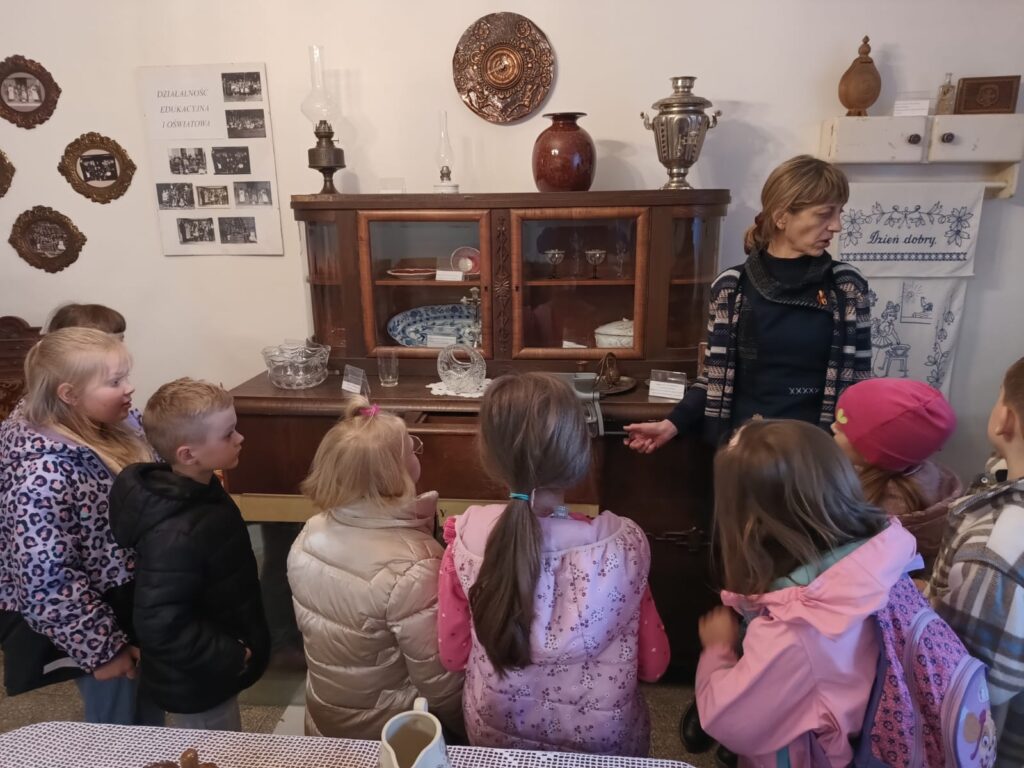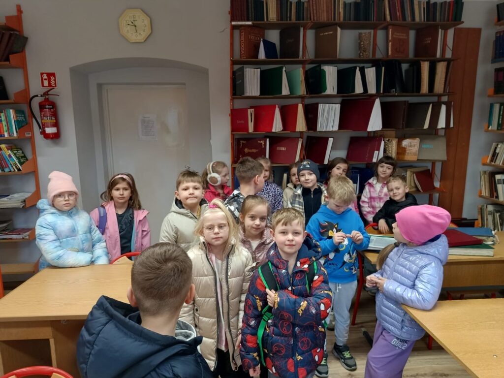 Ogromne wrażenie zrobiła na nich licealna biblioteka. Liczba książek na półkach była wręcz nie do policzenia! Tak wiele różnych gatunków i grubych tomów wywołało u naszych pierwszaków prawdziwy podziw. Najwięcej emocji wzbudziła jednak wizyta w izbie regionalnej. Z zapartym tchem słuchali opowieści o dawnych czasach, mogąc własnoręcznie dotknąć niezwykłych eksponatów. Okazało się, że niektóre z tych „skarbów” nasi uczniowie kojarzą z domów swoich dziadków! Padło mnóstwo pytań, a największą ciekawość wzbudził stary gramofon.